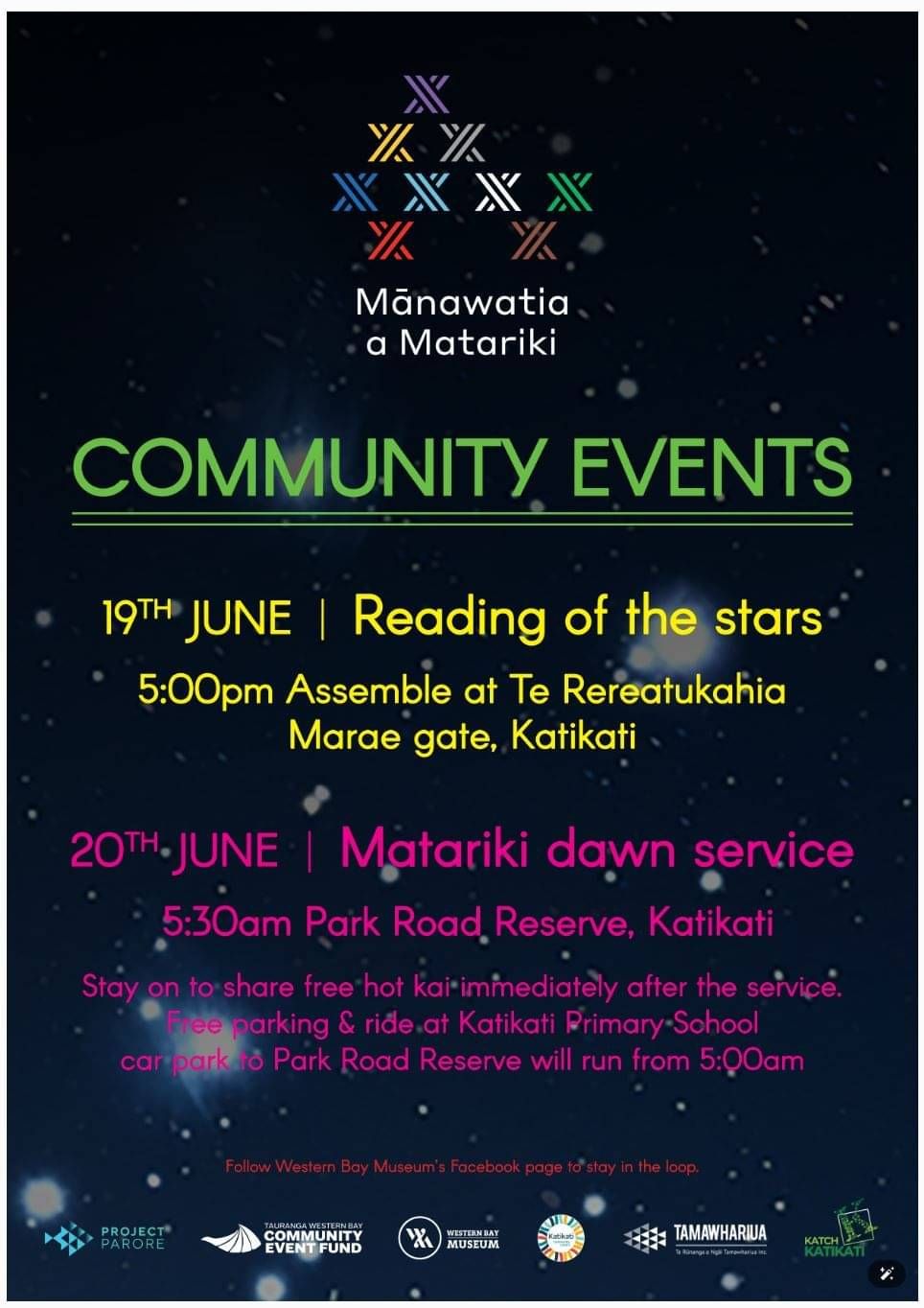 19 June - Reading of the Stars. Assemble at Te Rereatukahia Marae gate, Katikati.